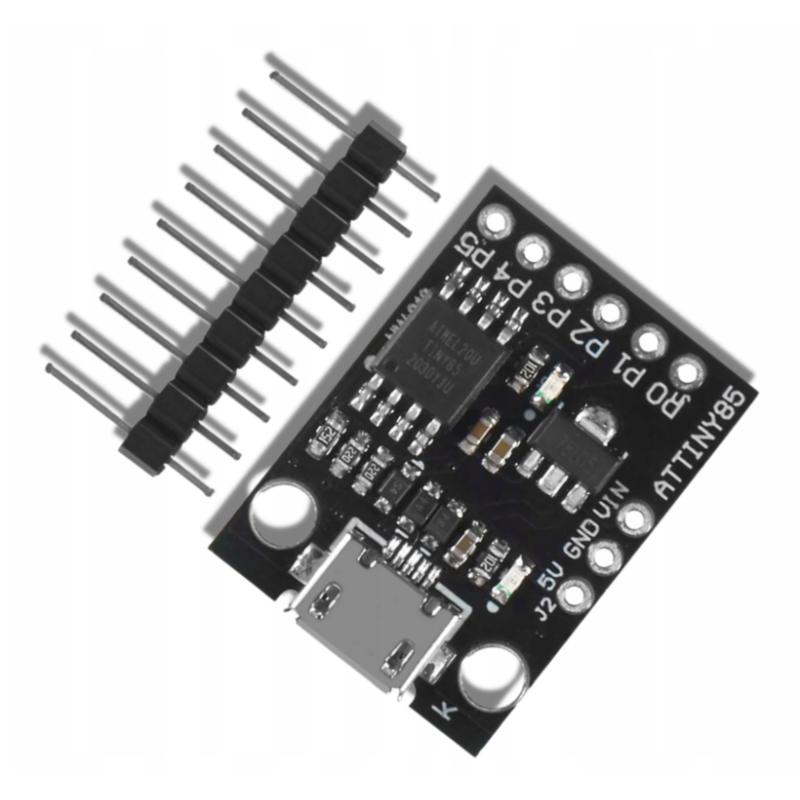 Vývojová miniatúrna doska založená na ATtiny85 predstavuje cenovo výhodnú a kompaktnú alternatívu k Arduinu a ponúka o niečo menší výpočtový výkon. Je kompatibilná s rôznymi shieldami pre vylepšenú funkčnosť a bezproblémovo sa integruje so známym Arduino IDE, vďaka čomu je vynikajúcim vstupným bodom do sveta elektroniky mikrokontrolérov.
