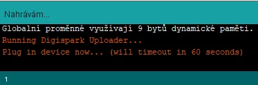 Ešte je potrebné upozorniť na to, že pred každým programovaním dosky musí byť doska odpojená z USB portu a pripája sa až v okamihu požiadavky programovania, inak sa program do dosky nepodarí nahrať. Presný okamih pripojenia dá Arduino IDE vedieť hneď po kompilácii: