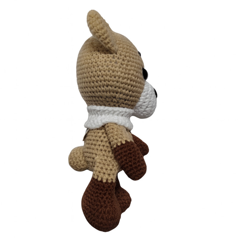 Tento háčkovaný medvedík vyrástol na približne 25 cm. Je vytvorený zo zmesovej priadze Jeans (55% bavlna, 45% akryl), vďaka čomu je jemný, pritom odolný a ľahký na údržbu. Výplň tvorí antialergické duté vlákno, ktoré drží tvar a poskytuje ovečke nadýchaný objem. Pre extra bezpečnosť sú použité bezpečnostné očká pevne uchytené v hlavičke.